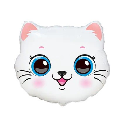 Чарівна фольгована кулька у вигляді милого котика стане ідеальним доповненням до дитячого свята, дня народження або фотозони. Ніжний дизайн з великими блакитними очима, рожевими щічками та усмішкою створює атмосферу радості та затишку.